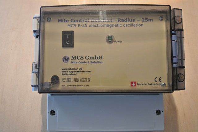 Das MCS R-25 Milbenschutzgerät ist vorwiegend für mittlere und kleinere Hühner-Ställe geeignet. Das Gerät wirkt in einem Radius von ca. 25 Meter.