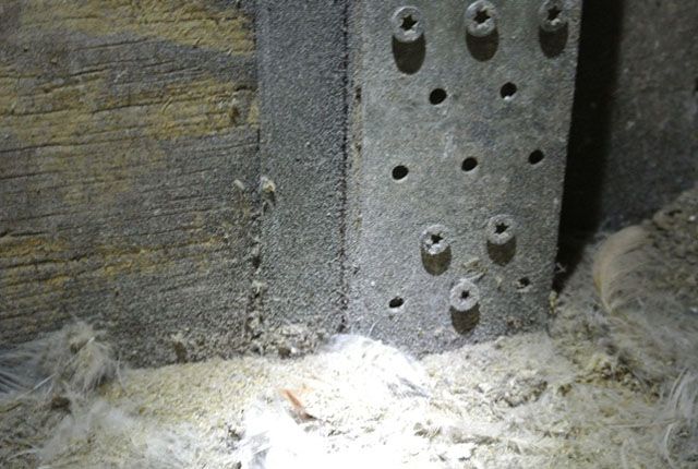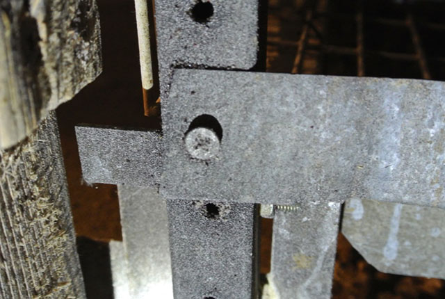 Holz-Metallteil - Milben versuchen sich zu entwickeln - MCS-Milbenschutzgerät hemmt die Entwicklung indem es ihnen die Energie nimmt