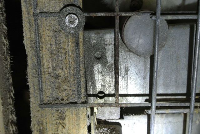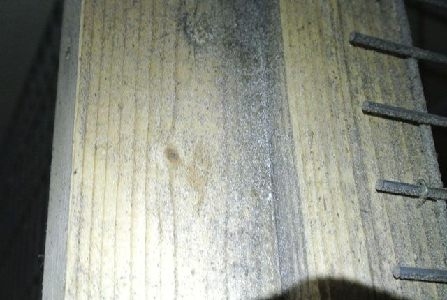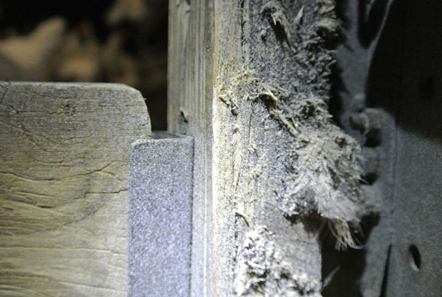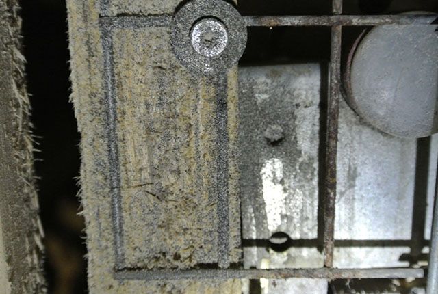 Türabtrennung - ergraute Milben auf Holz und Metallteile